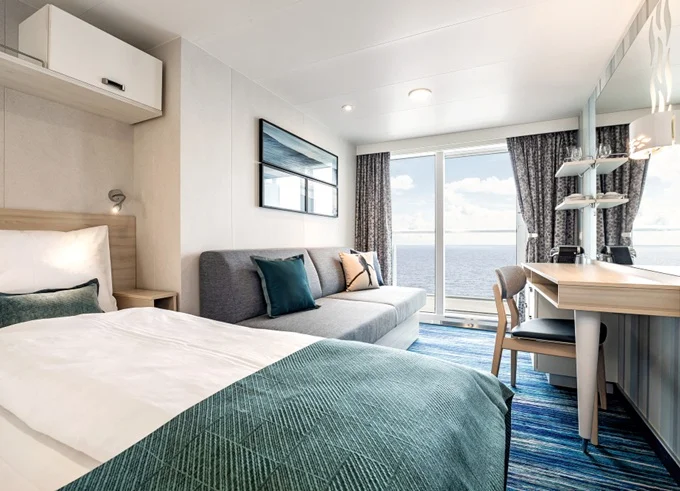 | SKAO - Schöne Aussicht Suite 39 m² + balkón 13-14 m² s ležadlami a hojdacou sieťou. 7-14. paluba. Max 4 osoby. Výhody Suite. | 15 556 € 3 889 € za osobu | ||